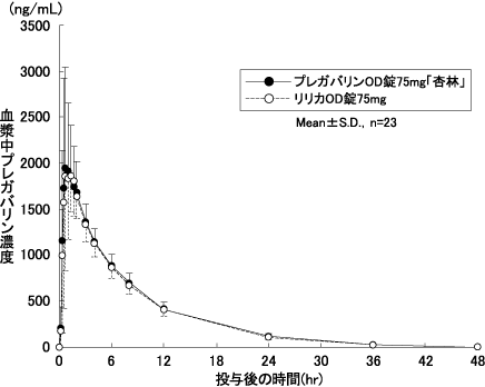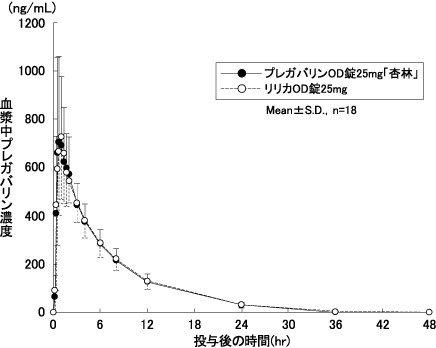 7) キョーリンリメディオ株式会社社内資料:プレガバリンOD錠25mg「杏林」・75mg「杏林」・150mg「杏林」の生物学的同等性試験に関する資料