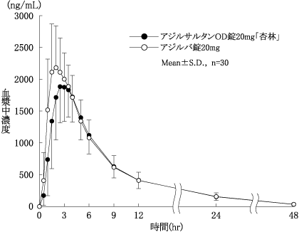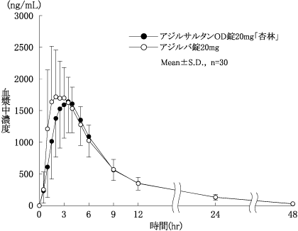 8) キョーリンリメディオ株式会社社内資料:アジルサルタンOD錠20mg「杏林」の生物学的同等性試験に関する資料
