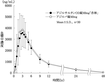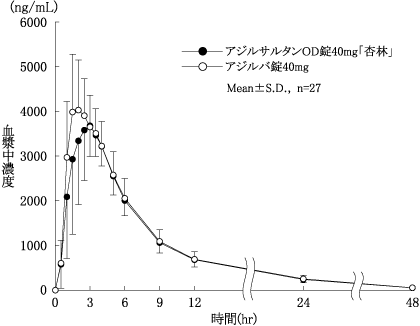 9) キョーリンリメディオ株式会社社内資料:アジルサルタンOD錠40mg「杏林」の生物学的同等性試験に関する資料