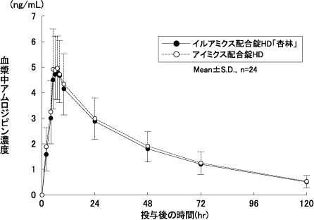 24) イルベサルタンとアムロジピンの併用単回投与時における薬物相互作用試験(アイミクス配合錠:2012年9月28日承認、申請資料概要2.7.2.2)