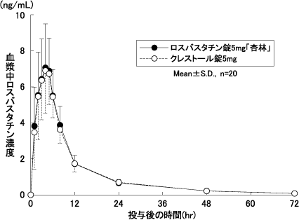 5) 単回投与後の血漿中濃度,1996(クレストール錠:2005年1月19日承認、申請資料概要へ3.3.1.2)