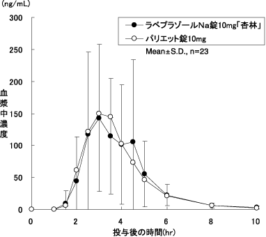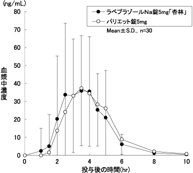 4) キョーリンリメディオ株式会社社内資料:ラベプラゾールNa錠5mg「杏林」・10mg「杏林」の生物学的同等性試験に関する資料