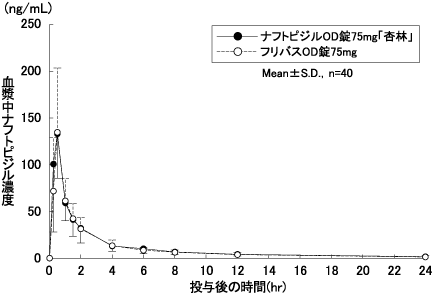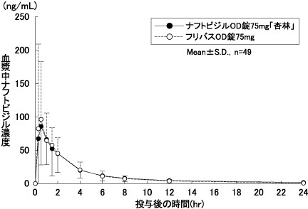 2) キョーリンリメディオ株式会社社内資料:ナフトピジルOD錠25mg「杏林」・50mg「杏林」・75mg「杏林」の生物学的同等性試験に関する資料