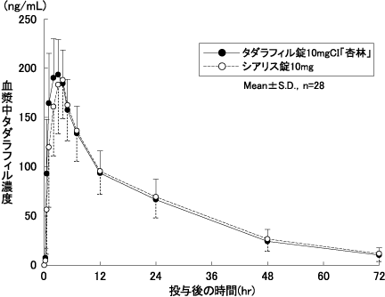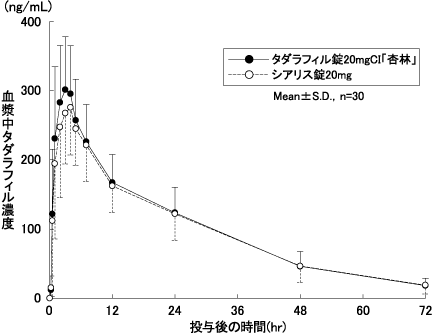 21) 健康成人における薬物動態(単回投与)(シアリス錠:2007年7月31日承認、申請資料概要 2.7.2.2.2.1.1)