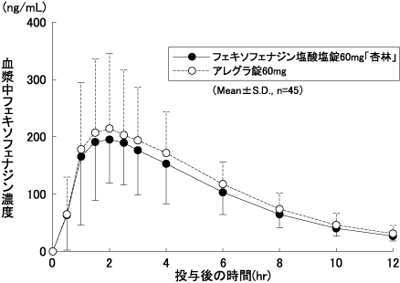 4) キョーリンリメディオ株式会社社内資料:フェキソフェナジン塩酸塩錠30mg「杏林」・60mg「杏林」の生物学的同等性試験に関する資料