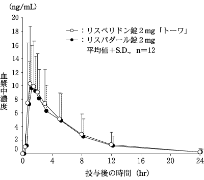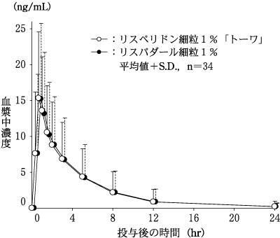 患者の状態を観察しながら少量(1回0.5mg)から投与するなど、慎重に投与すること。高齢者では錐体外路症状等の副作用があらわれやすく、また、腎機能障害を有する患者では最高血漿中濃度が上昇し、半減期が延長することがある。