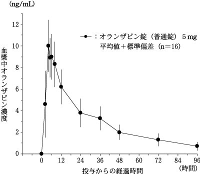 通常、成人にはオランザピンとして5mgを1日1回経口投与により開始し、その後1日1回10mgに増量する。なお、いずれも就寝前に投与することとし、年齢、症状に応じ適宜増減するが、1日量は20mgを超えないこと。