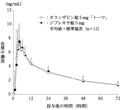 23) 双極Ⅰ型障害又は統合失調感情障害患者を対象としたオランザピンとバルプロ酸の薬物相互作用試験(ジプレキサ錠/細粒/ザイディス錠:2010年10月27日承認、申請資料概要2.7.6.2)