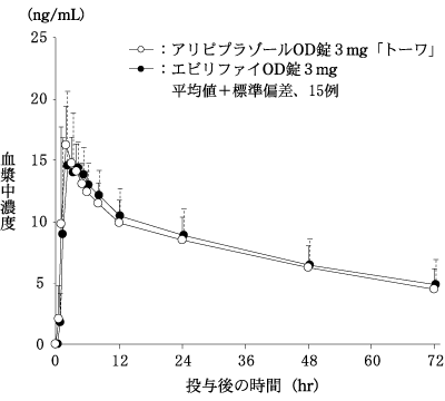 19) カルバマゼピンとの相互作用(エビリファイ錠/散:2006年1月23日承認、申請資料概要2.7.6.3)