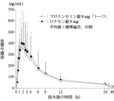 7) 社内資料:生物学的同等性試験(錠8mg)