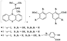 *3:(2RS)-N,N-Dimetyl-1-(10H-phenothiazin-10-yl)propan-2-ylamine 3-(3-carboxy-4-hydroxybenzyl)-5,5'-methylenedi(2-hydroxybenzoate)