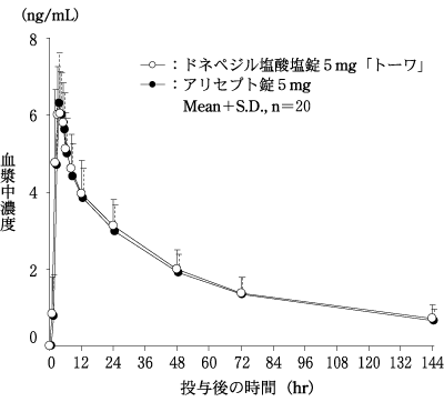 1) 健康成人における薬物動態(単回経口投与試験)(アリセプト錠:1999年10月8日承認、申請資料概要ヘ.3.(1))