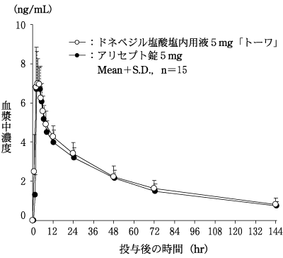 1) 健康成人における薬物動態(単回経口投与試験)(アリセプト錠:1999年10月8日承認、申請資料概要ヘ.3.(1))