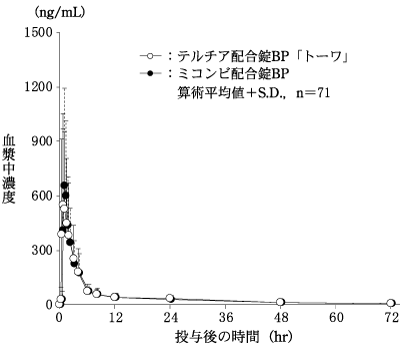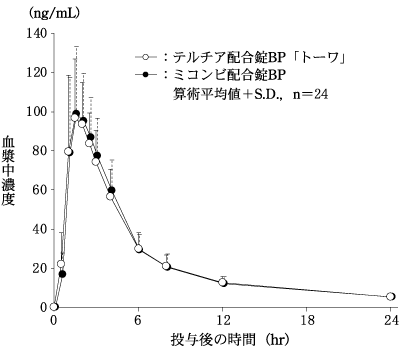 12) 生物学的同等性試験(ミコンビ配合錠:2009年4月22日承認、申請資料概要2.7.1.2、2.7.1.4、2.7.6.1)