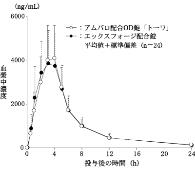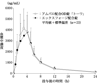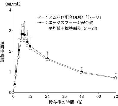 7) 配合剤投与時と併用投与時の生物学的同等性の検討(エックスフォージ配合錠:2010年1月20日承認、申請資料概要2.7.6.1)