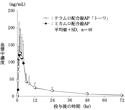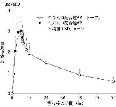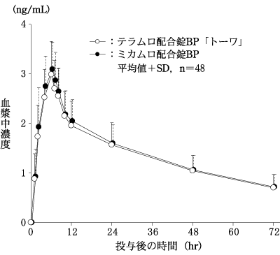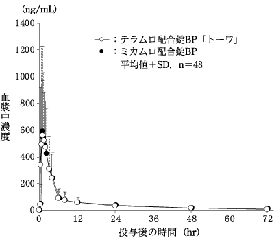 9) 健康成人での薬物動態試験(ミカムロ配合錠:2012年12月21日承認、審査報告書)