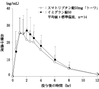 3) 健康成人における単回投与時の血中濃度(イミグラン錠:2001年6月20日承認、申請資料概要ヘ.3.1.1)