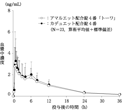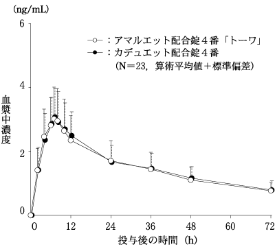 6) 健康成人における単回投与時の安全性と薬物動態ならびに食事の影響(カデュエット配合錠:2009年7月7日承認、申請資料概要2.7.1.2、2.7.2.3)