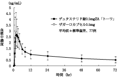 デュタステリド錠0.5mgZA「トーワ」とザガーロカプセル0.5mgを、クロスオーバー法によりそれぞれ1錠又は1カプセル(デュタステリドとして0.5mg)健康成人男子に絶食単回経口投与して血漿中未変化体濃度を測定し、得られた薬物動態パラメータ(AUC、Cmax)について90%信頼区間法にて統計解析を行った結果、log(0.80)~log(1.25)の範囲内であり、両剤の生物学的同等性が確認された。7)