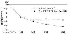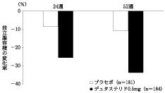 前立腺肥大症患者にデュタステリド0.05~2.5mg注3)を1日1回反復経口投与した時、血清中ジヒドロテストステロン濃度は投与2週までに速やかに低下した。反応は用量依存的であり、投与6ヵ月の0.5mgによる減少は89.7%と2.5mgと同程度で最大であった28)。