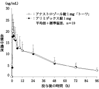 2) 閉経後健常女性における血漿中濃度(アリミデックス錠:2000年12月12日承認、申請資料概要ヘ.3.(1))