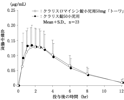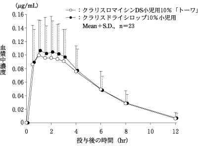 小児に10mg(力価)/kgを単回経口投与したときの血清中濃度には、食事の影響がほとんど認められなかった。24)