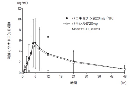8) 20mg単回経口投与した時の食事の影響 (パキシル錠:2000年9月22日承認、申請資料概要へ.3.7.1)(L20230348)