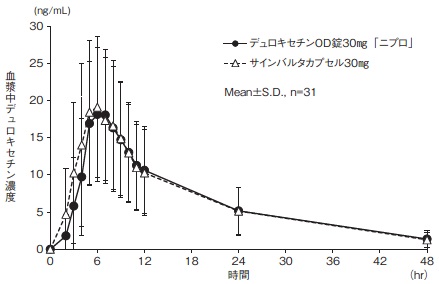 11) 社内資料:生物学的同等性試験(OD錠30mg、食後・水あり投与)