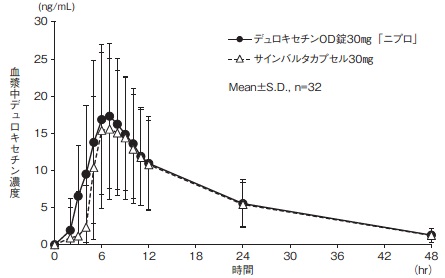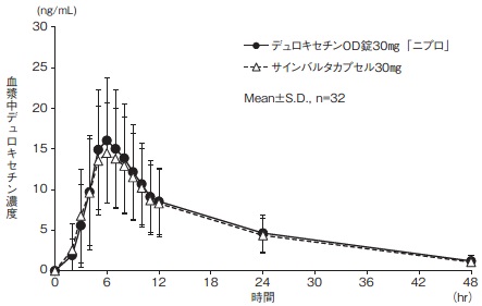 12) 社内資料:生物学的同等性試験(OD錠30mg、食後・水なし投与)