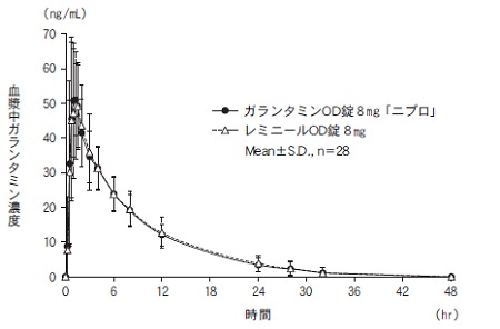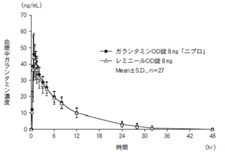 5) ガランタミンOD錠と錠剤の生物学的同等性試験(レミニール錠/OD錠/内用液:2011年1月21日承認、CTD2.7.6.16)(L20201711)