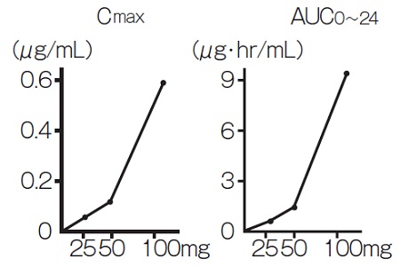 血漿中濃度ならびにAUC、Cmax等のパラメータは、被験者の選択、体液の採取回数・時間等の試験条件によって異なる可能性がある。