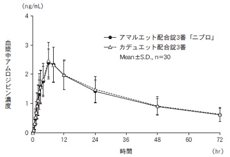増量時には慎重に投与すること。アムロジピン高用量(10mg)において副作用の発現率が高まる可能性がある。本剤は主に肝で代謝されるため、血中濃度半減期の延長及び血中濃度-時間曲線下面積(AUC)が増大することがある。