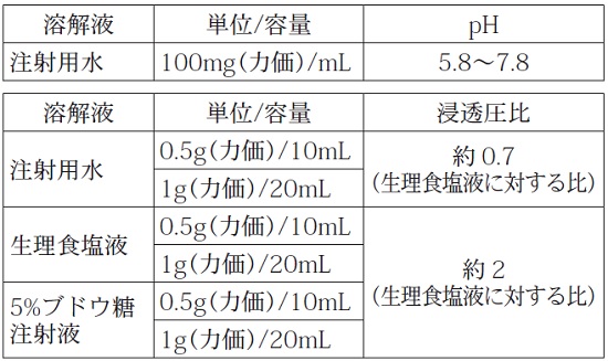 通常、成人には1日1~2g(力価)を2回に分割し静脈内に注射する。なお、難治性又は重症感染症には症状に応じて1日量を4g(力価)まで増量し、2~4回に分割投与する。通常、小児には1日40~100mg(力価)/kgを2~4回に分割し静脈内に注射する。なお、難治性又は重症感染症には症状に応じて1日量を150mg(力価)/kgまで増量し、2~4回に分割投与する。通常、未熟児・新生児の生後0から3日齢には1回20mg(力価)/kgを1日2~3回、また、生後4日齢以降には1回20mg(力価)/kgを1日3~4回静脈内に注射する。なお、難治性又は重症感染症には、症状に応じて1日量を150mg(力価)/kgまで増量し、2~4回に分割投与する。静脈内注射に際しては、日局注射用水、日局生理食塩液又は日局ブドウ糖注射液に溶解し、緩徐に投与する。なお、本剤は糖液、電解質液又はアミノ酸製剤等の補液に加えて30分~2時間かけて点滴静注することもできる。