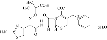 (6R,7R)-7-[(Z)-2-(2-Aminothiazol-4-yl)-2-(1-carboxy-1-methylethoxyimino)acetylamino]-3-(pyridinium-1-ylmethyl)-8-oxo-5-thia-1-azabicyclo[4.2.0]oct-2-ene-2-carboxylate pentahydrate