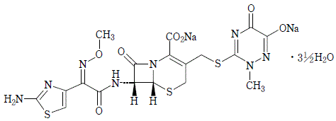 Disodium(6R,7R)-7-[(Z)-2-(2-aminothiazol-4-yl)-2-(methoxyimino)acetylamino]-3-(6-hydroxy-2-methyl-5-oxo-2,5-dihydro-1,2,4-triazin-3-ylsulfanylmethyl)-8-oxo-5-thia-1-azabicyclo[4.2.0]oct-2-ene-2-carboxylate hemiheptahydrate