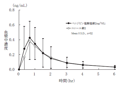 2) 社内資料:生物学的同等性試験(錠2mg)