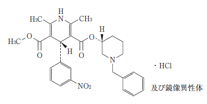 ヒトの血漿中、尿中に検出された代謝物及び動物での代謝研究から、ヒトにおける代謝反応は主として3位側鎖のベンジル基の脱離(N-脱アルキル化)、3位の1-ベンジル-3-ピペリジルエステル及び5位のメチルエステルの加水分解、ジヒドロピリジン環の酸化、2位のメチル基の酸化と考えられている7),8)。