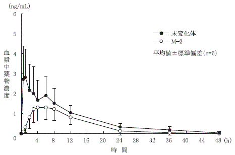 本剤の血漿中薬物濃度の有意な上昇(Cmax:+55.9%、AUC0-Tlast:+81.8%)がみられた。