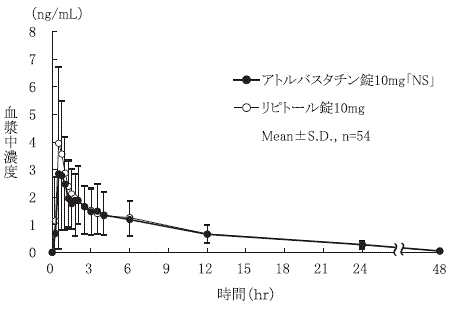 健康成人12例でアトルバスタチン10mgを絶食下及び食後に単回経口投与した結果、アトルバスタチンの吸収速度は食事により低下するものの、吸収率はほとんど影響を受けなかった6) 。