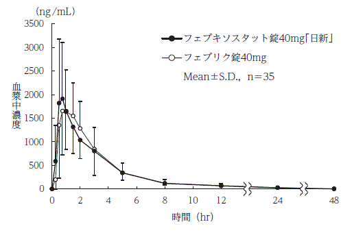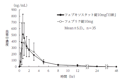 5) 血漿中濃度(健康成人、単回)(フェブリク錠:2011年1月21日承認、申請資料概要2.7.6.5)