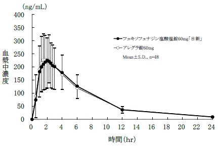 7) 生物学的同等性試験(アレグラ錠:2000年9月22日承認、申請資料概要ヘ.Ⅲ.4.(2))