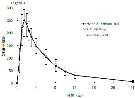 通常、1歳以上6歳未満の小児にはモンテルカストとして4mg(本剤1包)を1日1回就寝前に経口投与する。