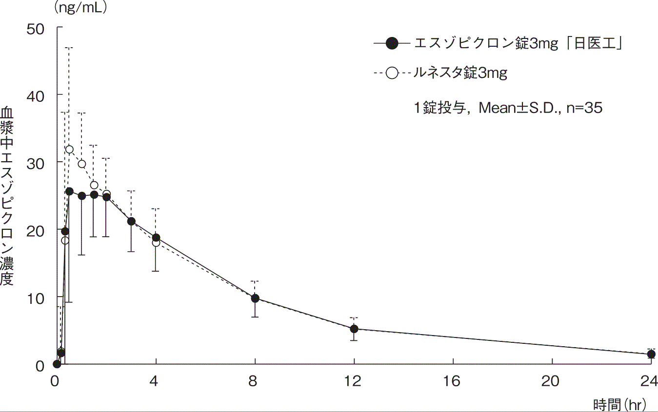 日本人健康成人を対象に、エスゾピクロン1~3mgを1日1回7日間反復経口投与したときの初回投与時及び投与後7日目の薬物動態パラメータを表に示した。エスゾピクロンのCmax及びAUC0-lastは投与量の増加に伴い増加した1)。
