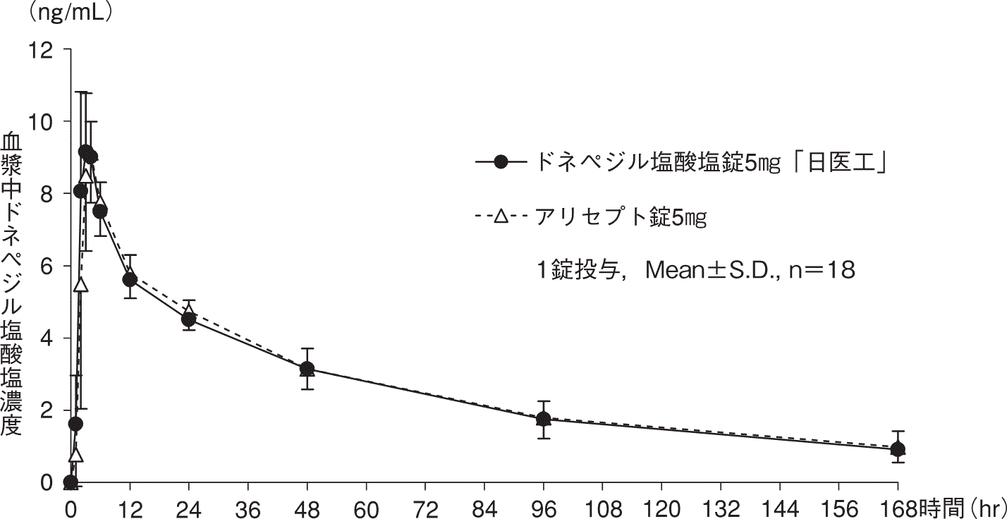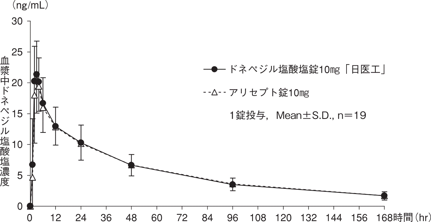 1) 健康成人における薬物動態(単回経口投与試験)(アリセプト錠:1999年10月8日承認、申請資料概要ヘ.3.(1))