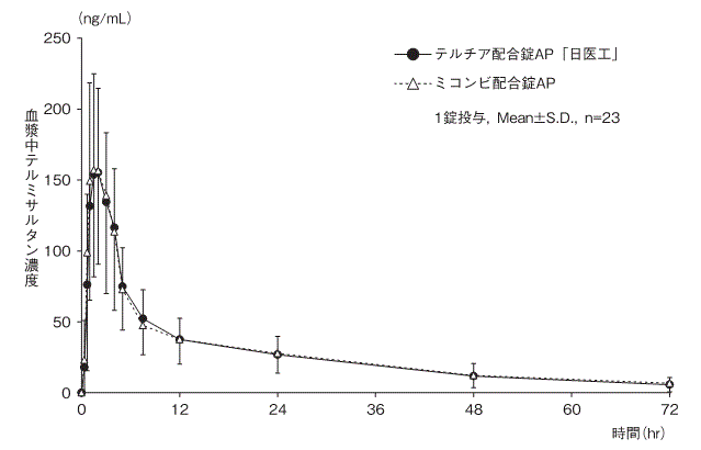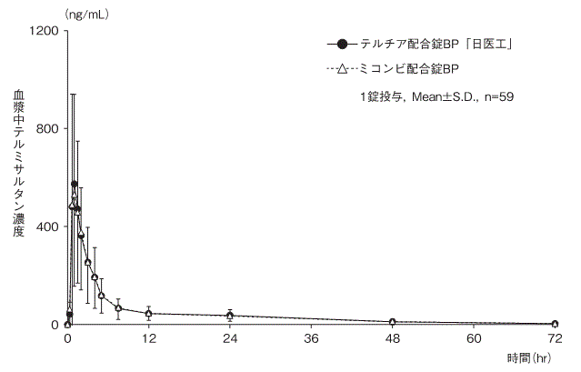 成人には1日1回1錠(テルミサルタン/ヒドロクロロチアジドとして40mg/12.5mg又は80mg/12.5mg)を経口投与する。本剤は高血圧治療の第一選択薬として用いない。