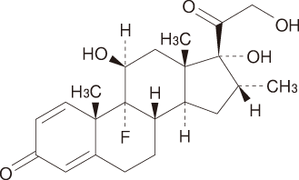 合成副腎皮質ホルモンで、天然の糖質コルチコイドと同じ機序により、起炎物質の生合成抑制と炎症細胞の遊走抑制により抗炎症作用を現す。細胞質あるいは核内に存在する受容体に結合すると、核内に移行して特定の遺伝子の転写を開始あるいは阻害する。転写が開始されて合成される代表的なタンパク質はリポコルチン-1であるが、これはホスホリパーゼA2を阻害して結果的にプロスタグランジン類、トロンボキサン類、ロイコトリエン類などの起炎物質の産生を低下させる5),6)。