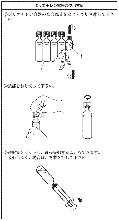 ただし、鎮痛の目的で使用する場合には、経口投与が不可能な場合又は経口剤で効果がみられない場合にのみ使用し、経口投与が可能になった場合には速やかに経口投与に切り替えること。