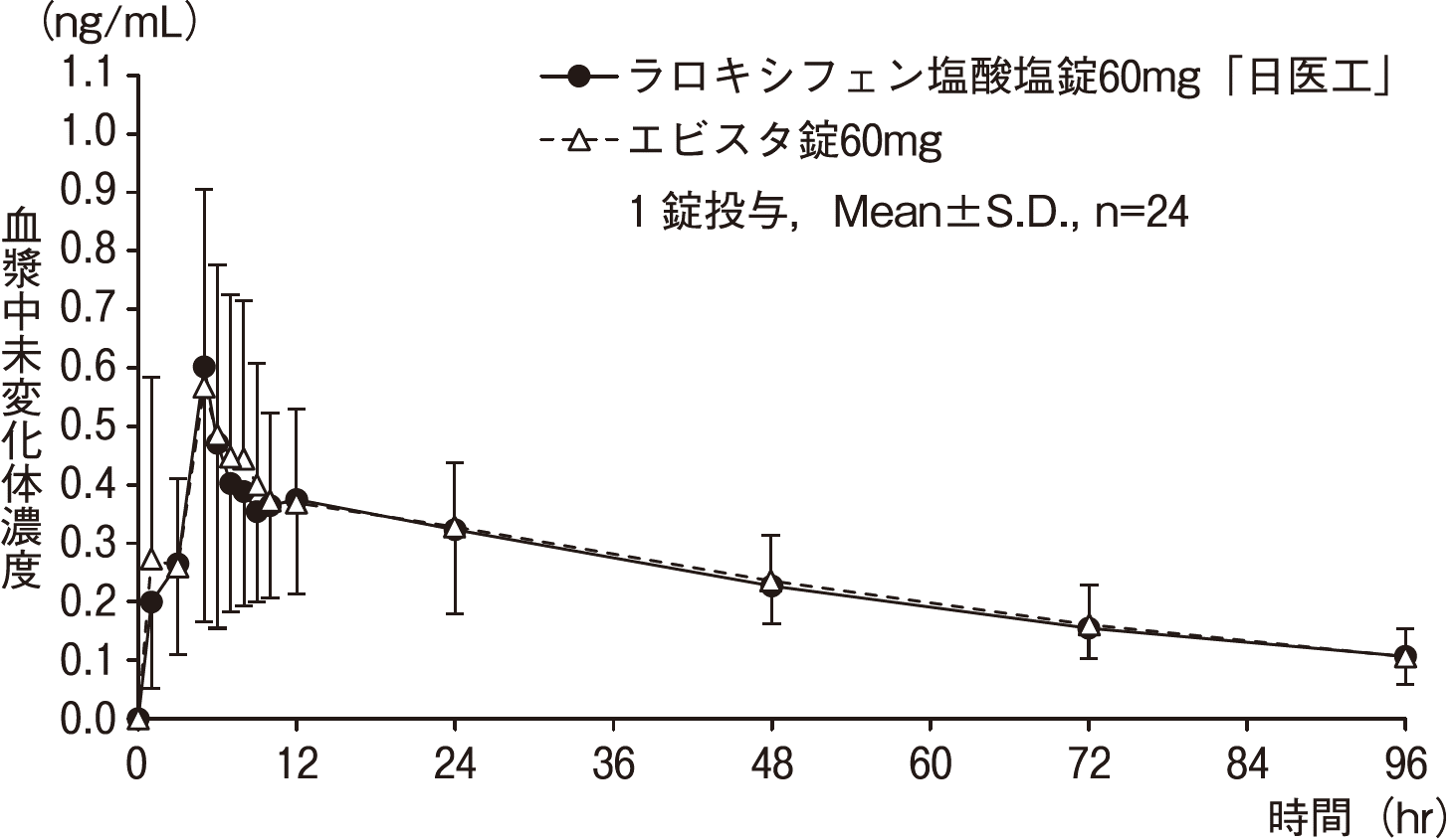 (1錠投与,Mean±S.D.,n=24)
