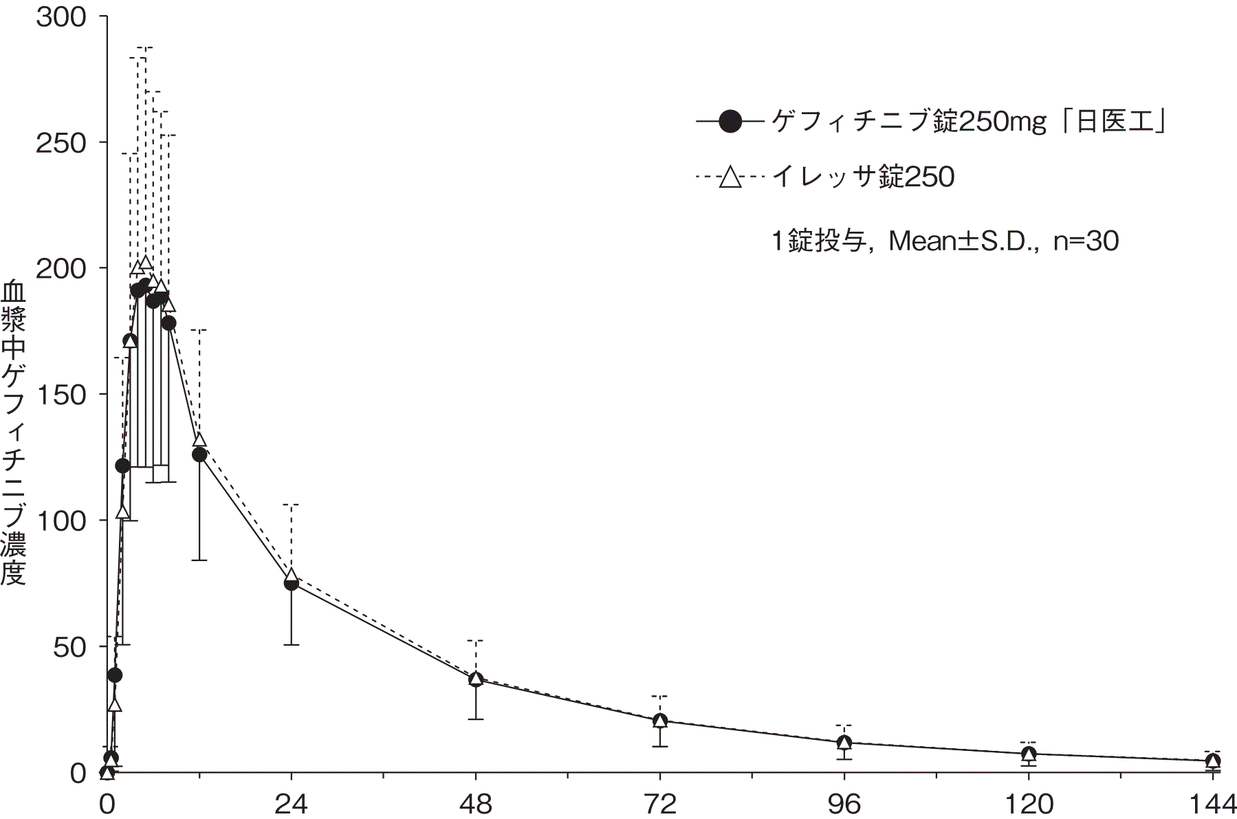 (1錠投与,Mean±S.D., n=30)