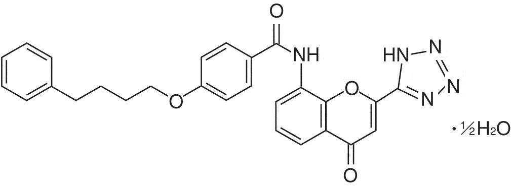 N -[4-Oxo-2-(1H-tetrazol-5-yl)-4H-chromen-8-yl]-4-(4-phenylbutyloxy)benzamide hemihydrate